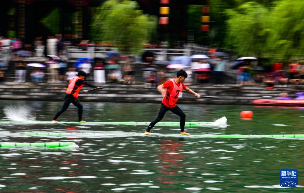 7月22日至23日,2025年民體杯全國獨竹漂比賽在貴州省黔東南苗族侗族自治州鎮遠古城舉行。來自浙江、湖北、廣西、廣東、貴州等省區的10支獨竹漂代表隊參加比賽。