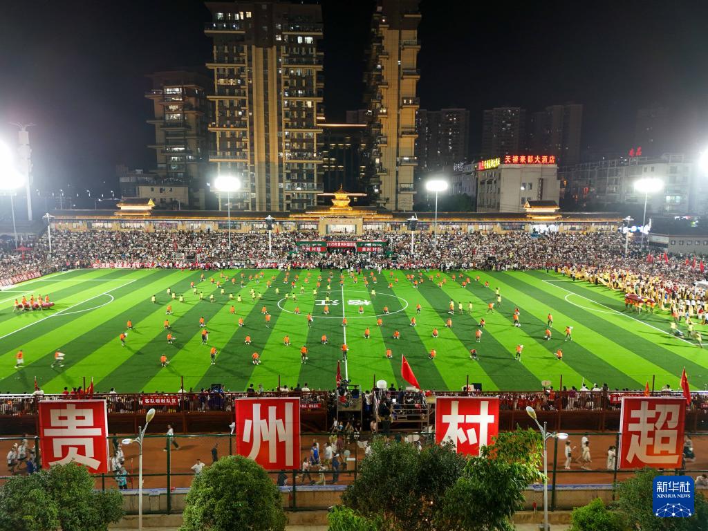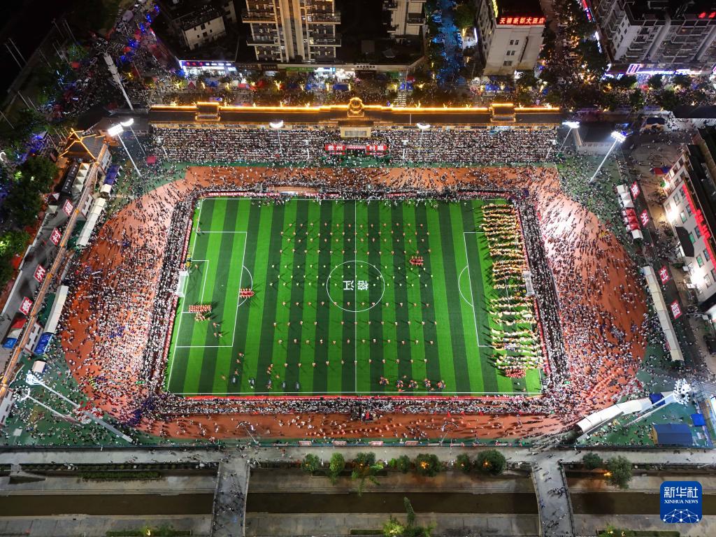 7月26日,大量觀眾來到榕江"村超"球場(無人機照片)。
