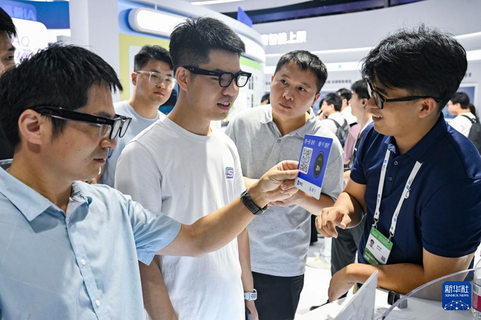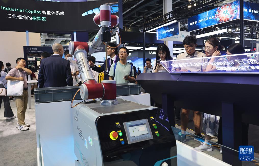 7月27日,參觀者在一個(gè)工業(yè)智能體系統(tǒng)操作演示展臺(tái)前駐足觀看。