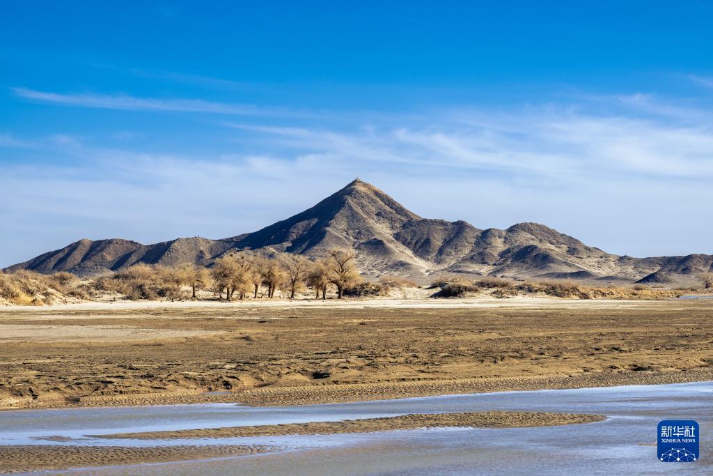 2025年4月22日在內(nèi)蒙古阿拉善盟額濟納旗拍攝的弱水河與狼心山風(fēng)光。