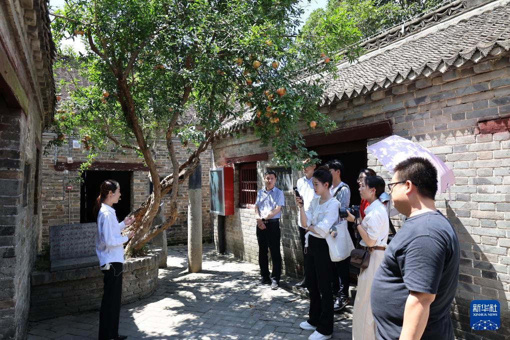 7月24日,在河南省駐馬店市確山縣的確山竹溝革命紀念館,講解員向游客介紹歷史。