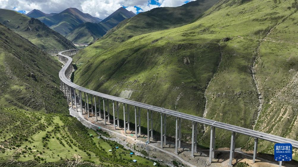 汽車行駛在西藏S5線拉薩至澤當的高等級公路上(無人機照片,2025年7月31日攝)。
