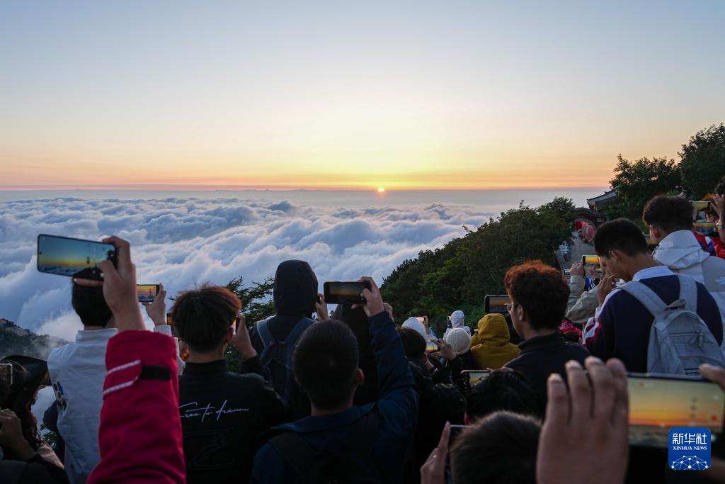 7月31日,游客在泰山景區日觀峰觀看日出。