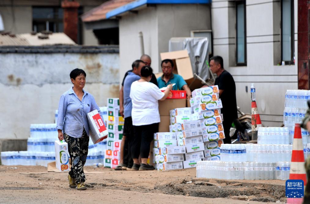 8月2日,在興隆縣六道河鎮南臺村,村民在領取物資。