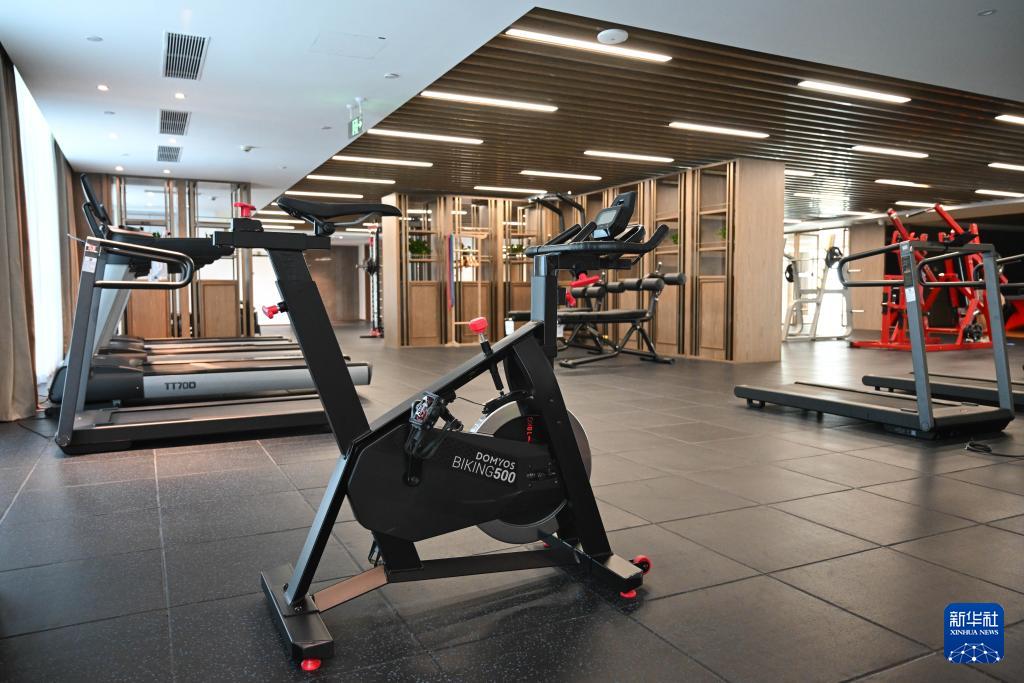8月3日在成都世運會運動員村內拍攝的運動員健身房。