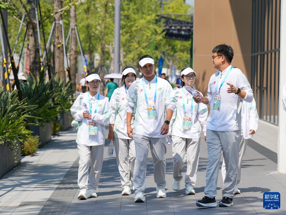 8月3日,志愿者在成都世運會運動員村A區(qū)巡村。