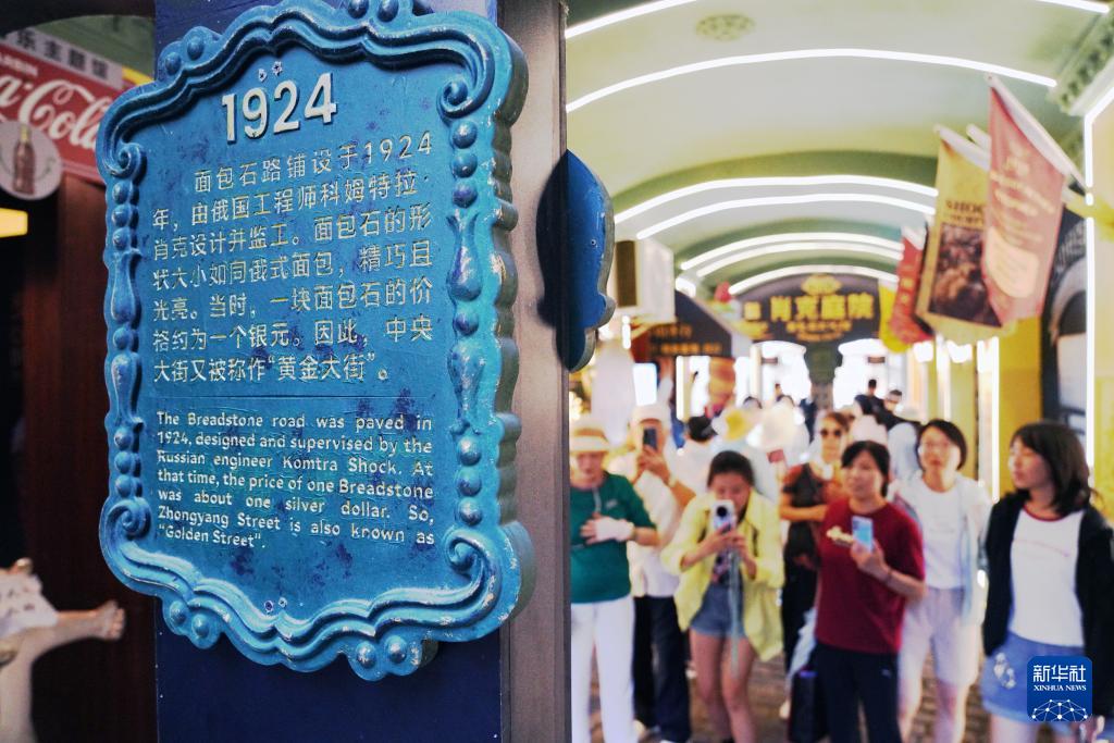 人們在哈爾濱中央大街肖克庭院景點(diǎn)參觀游覽(7月30日攝)。