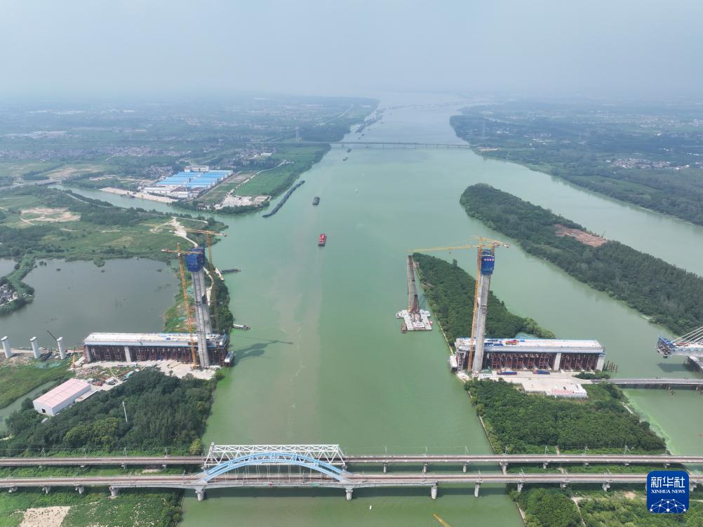 滬渝蓉高鐵跨京杭運(yùn)河斜拉橋主塔封頂
