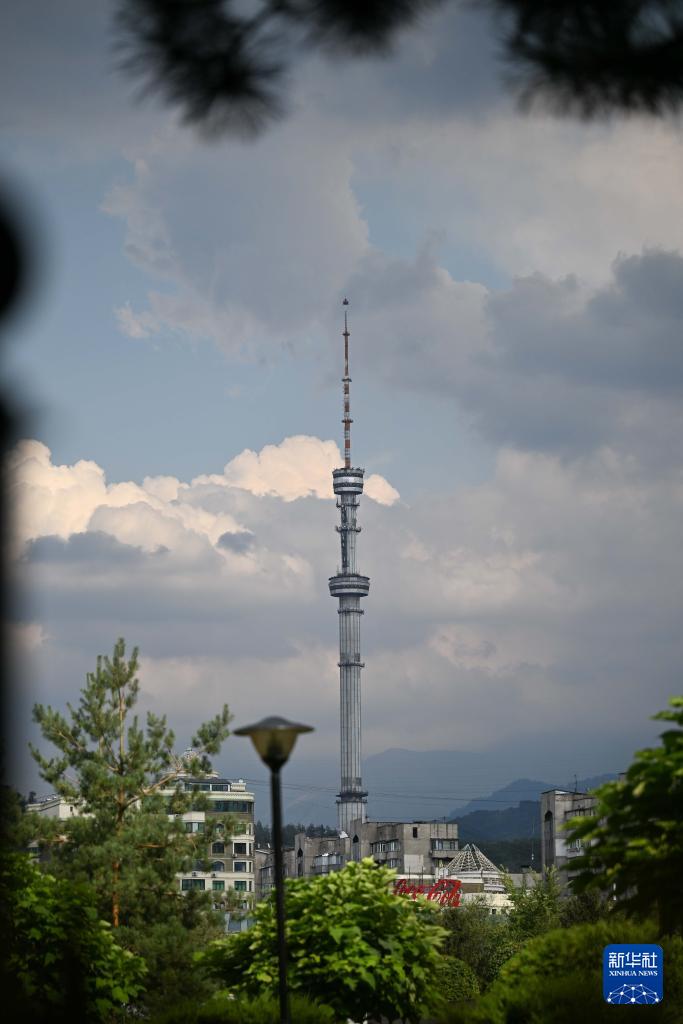 這是8月3日在哈薩克斯坦阿拉木圖拍攝的科克托別電視塔。