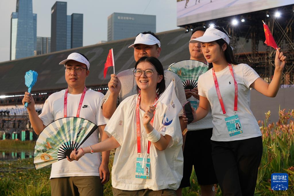 8月7日,觀眾在開幕式前自拍留影。