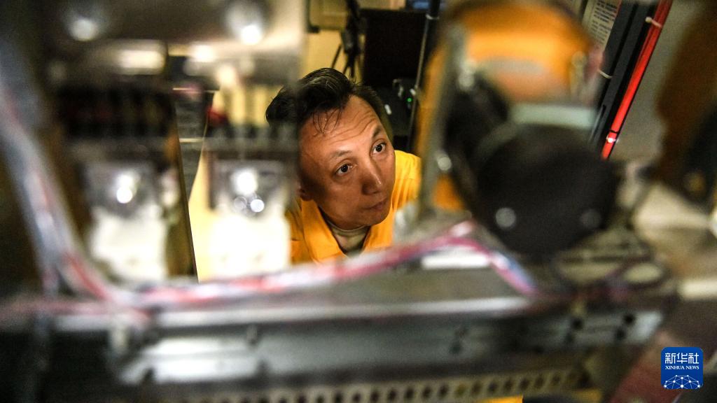 這是欽州電務段鐵路通信工長劉泉在檢查G網設備(8月6日攝)。