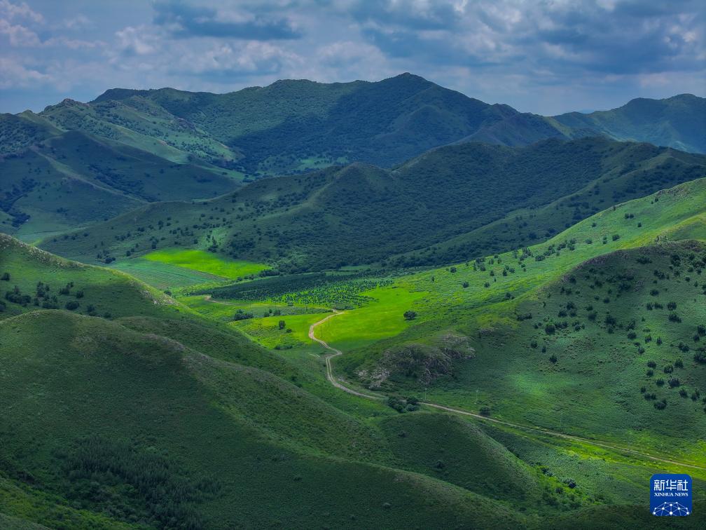 這是7月28日拍攝的內蒙古通遼市扎魯特山地草原美景(無人機照片)。