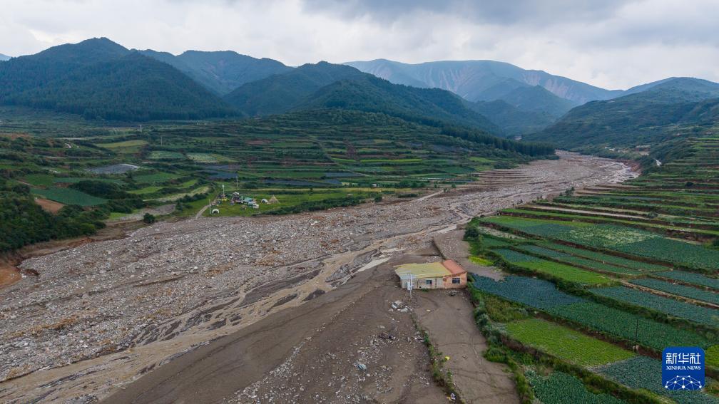 這是8月10日在榆中縣馬坡鄉(xiāng)上莊村拍攝的山洪災(zāi)害現(xiàn)場(chǎng)(無(wú)人機(jī)照片)。