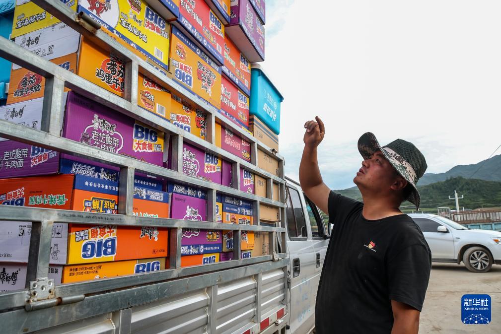 8月11日,在榆中縣馬坡鄉(xiāng)上莊村臨時(shí)安置點(diǎn),村黨支部書記陳萬(wàn)凱清點(diǎn)即將送到群眾家里的救災(zāi)物資。
