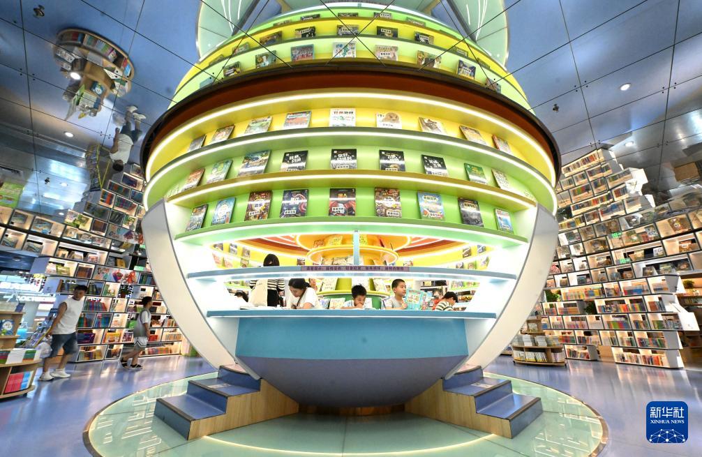 8月11日,小朋友在河北石家莊書城兒童區閱讀。