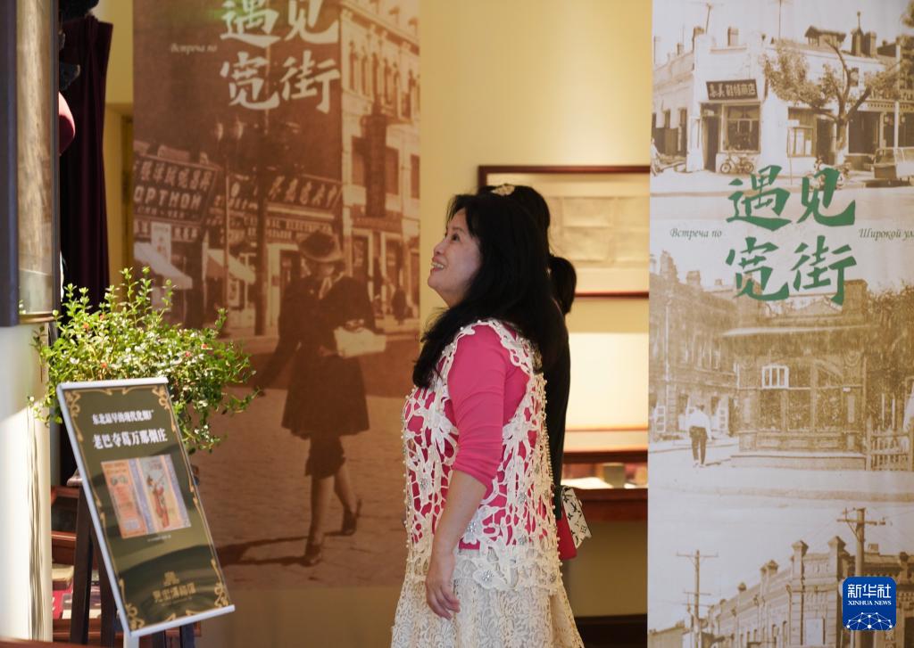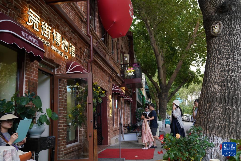 8月5日,游客在哈爾濱中央大街輔街上的寬街博物館參觀。