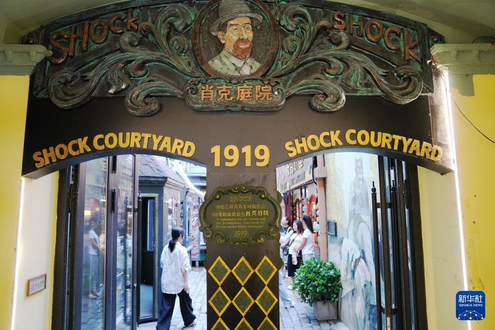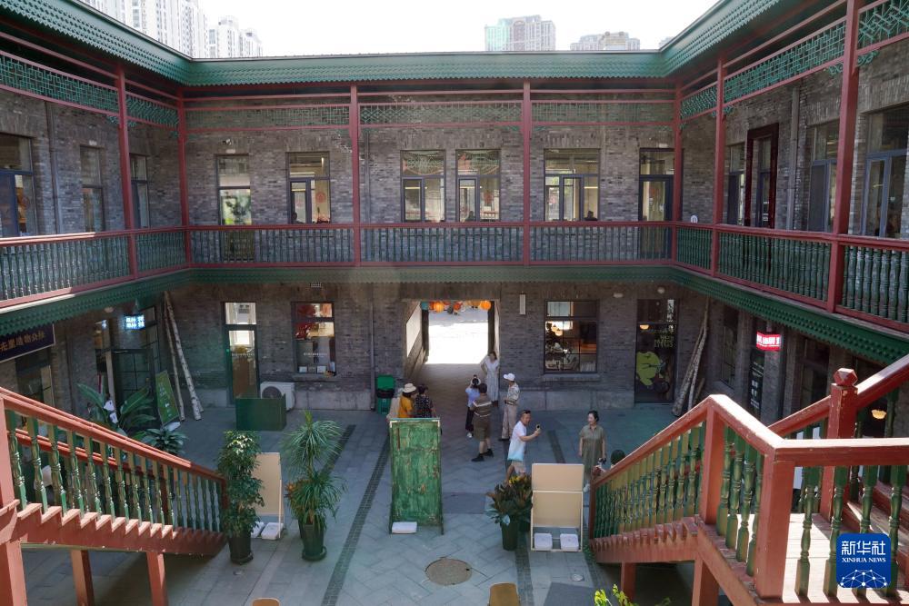 人們在哈爾濱中央大街肖克庭院景點參觀游覽(7月30日攝)。