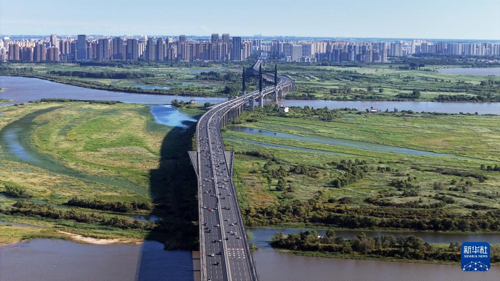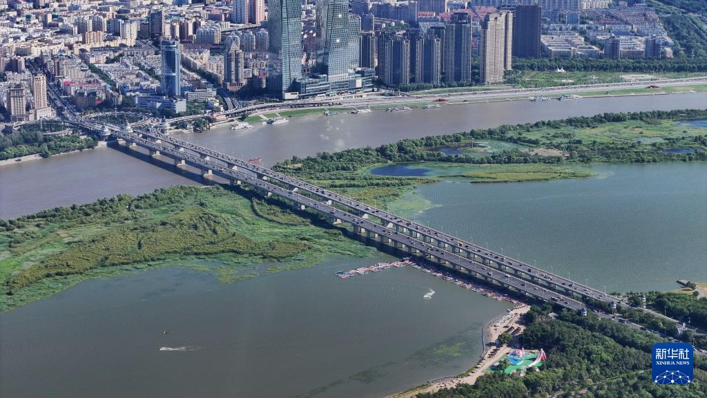 這是7月30日拍攝的哈爾濱城市建筑與周邊的濕地景觀(無人機照片)。
