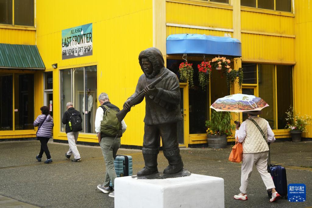 這是8月14日在美國阿拉斯加州安克雷奇市中心拍攝的街頭雕塑。