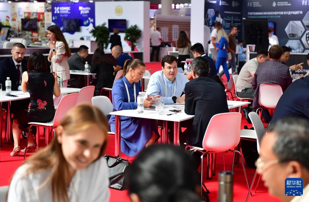 8月18日,多國企業代表在俄羅斯喀山舉行的第三屆俄羅斯-中國互利合作"萌芽"論壇上洽談。新華社記者 張超群 攝