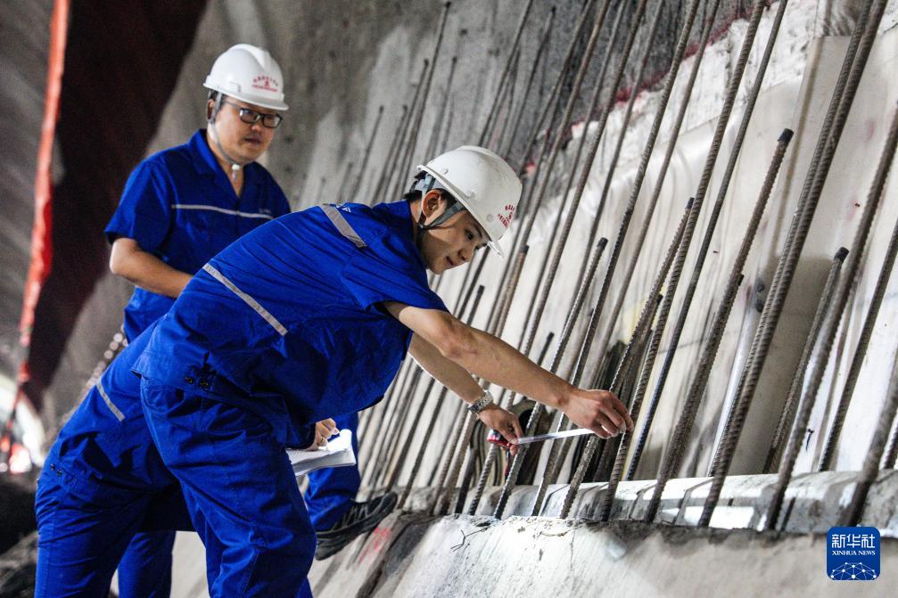 8月19日,中鐵五局的建設者在渝昆高鐵炳輝隧道內作業。