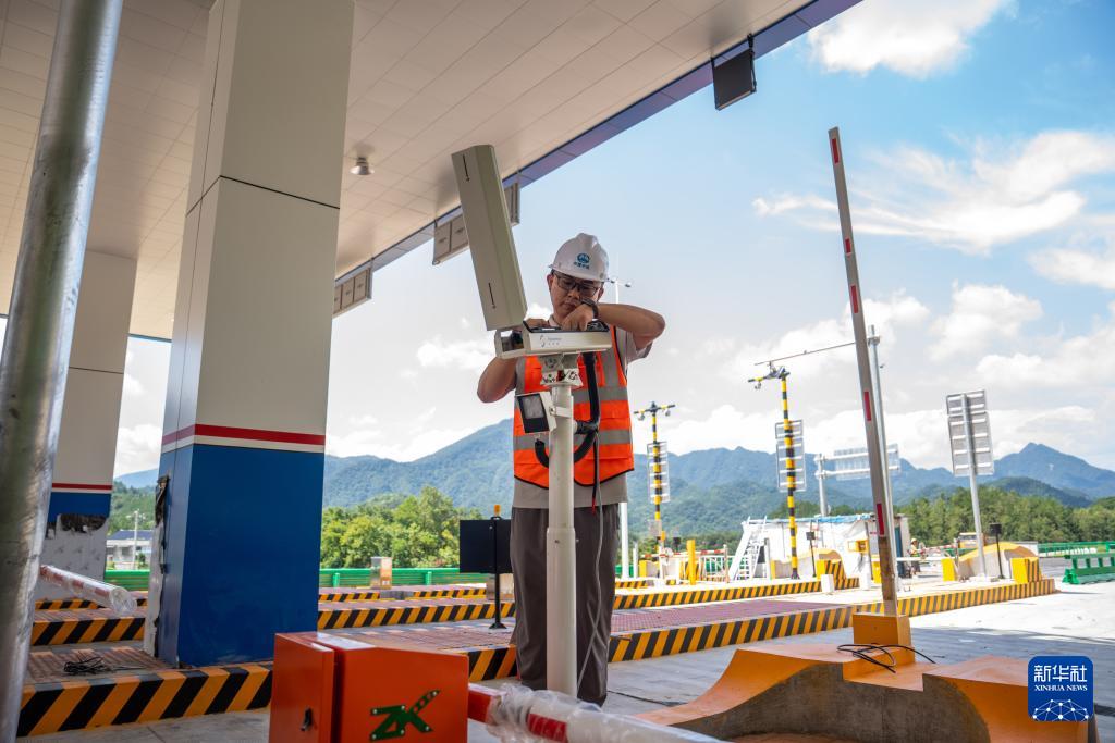 8月19日,在湖南爐慈高速維新收費(fèi)站,中鐵十局技術(shù)人員調(diào)試ETC設(shè)備。