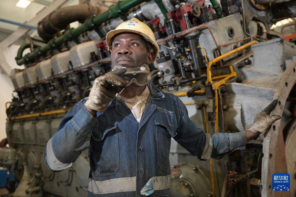 8月19日,在肯尼亞內(nèi)羅畢非洲之星鐵路運(yùn)營(yíng)有限責(zé)任公司機(jī)務(wù)檢修車間,肯方工作人員在檢修柴油機(jī)。