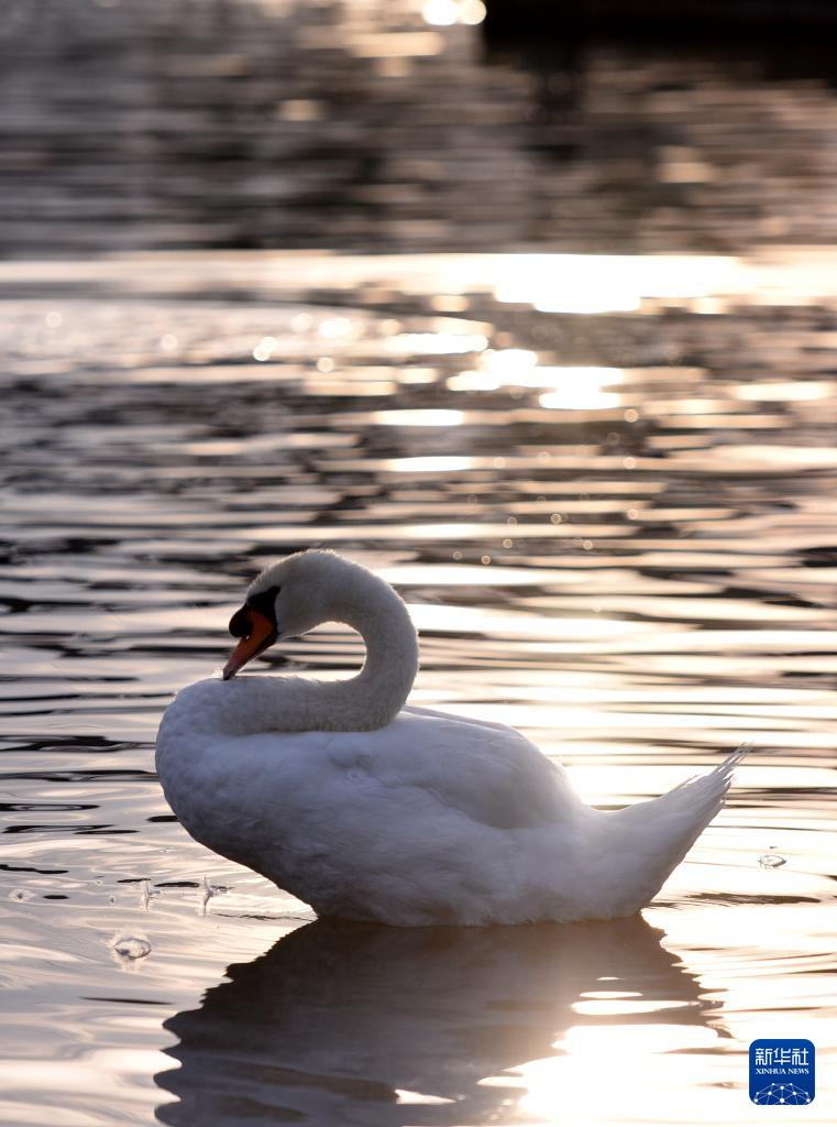 這是8月20日傍晚在奧地利維也納拍攝的多瑙河上的天鵝。