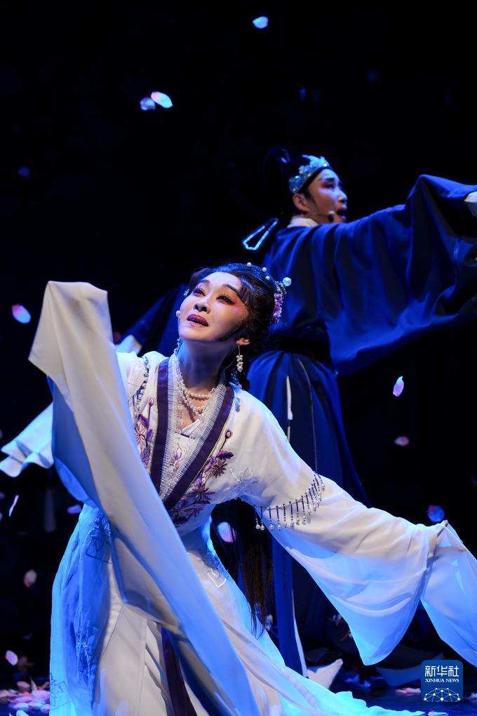 8月21日,在英國倫敦,浙江小百花越劇院的演員表演越劇折子戲《陸游與唐琬·題詩壁》。新華社記者 吳魯 攝