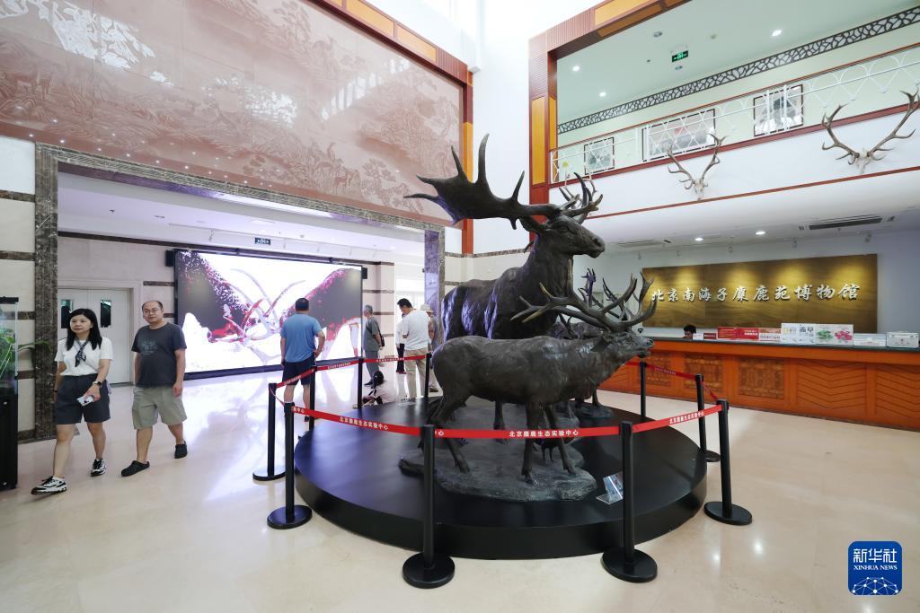 8月24日,游客在北京南海子麋鹿苑博物館參觀了解麋鹿相關知識。