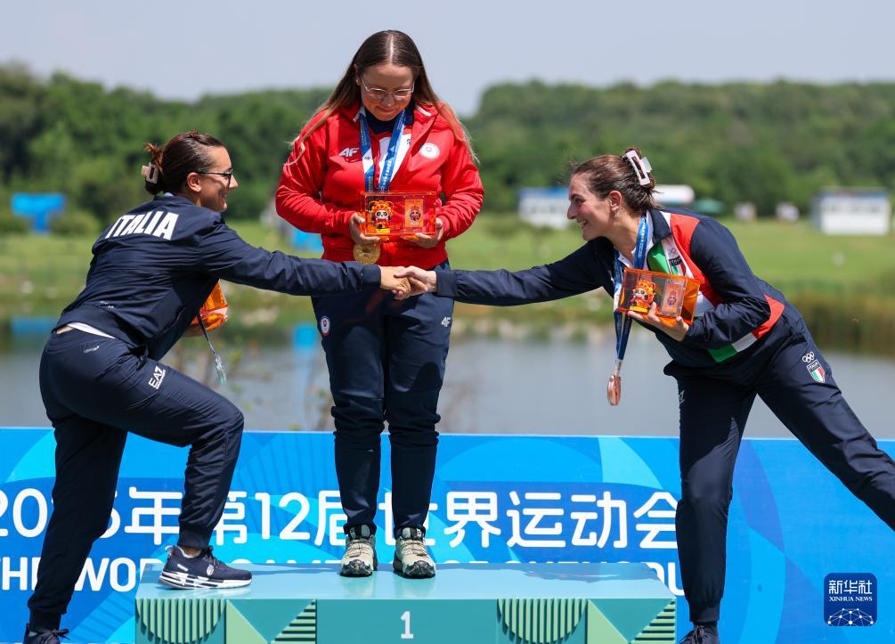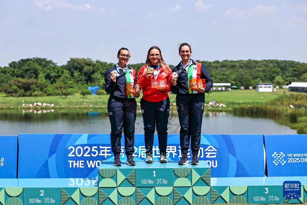當日,2025年成都世運會射箭女子反曲弓決賽在青龍湖濕地公園舉行。最終斯洛伐克選手巴蘭科娃獲得冠軍,意大利選手雷巴利亞蒂和迪弗朗切斯科分獲亞軍和季軍。