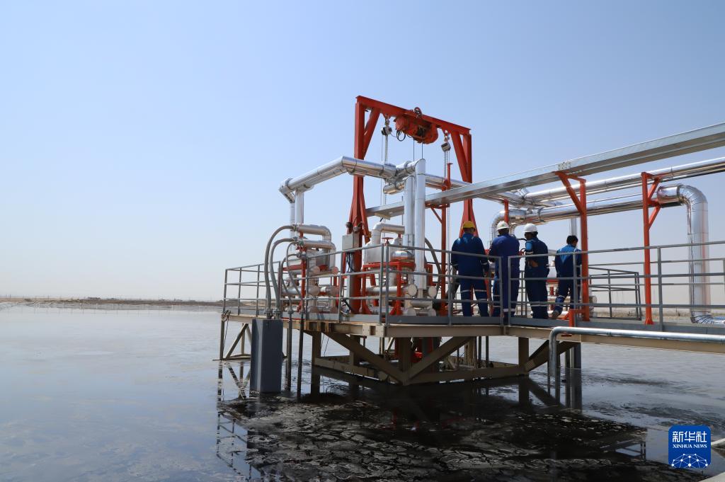 8月20日,在科威特艾哈邁迪省,工作人員在科威特環(huán)境修復(fù)計(jì)劃油湖原油回收項(xiàng)目現(xiàn)場(chǎng)工作。