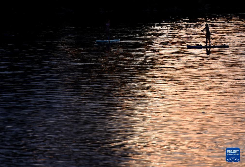 8月20日傍晚,在奧地利維也納,人們?cè)诙噼Ш由闲蓍e。