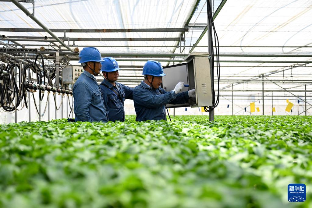 8月26日,在和縣綠緣溫室科技有限公司,國網馬鞍山供電公司的工作人員在檢修電力設施保障企業用電需求。
