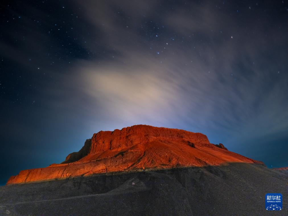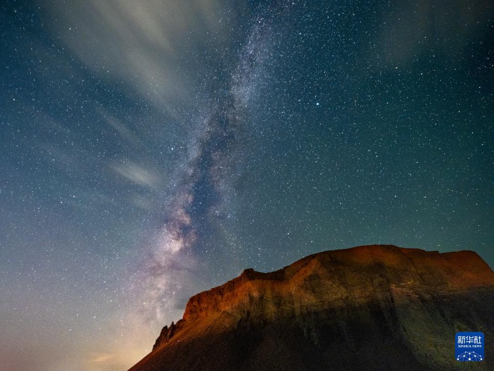這是8月30日在內(nèi)蒙古烏蘭察布市察哈爾右翼后旗烏蘭哈達(dá)火山地質(zhì)公園內(nèi)拍攝的銀河下的6號(hào)火山(堆棧合成照片)。