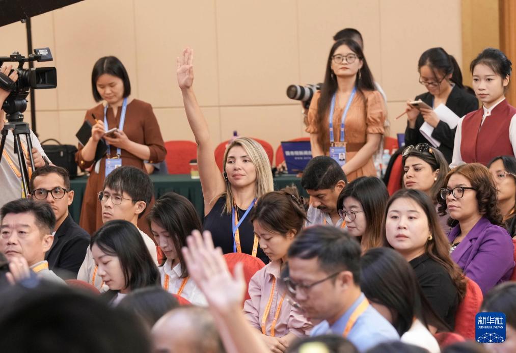9月1日下午,中國人民抗日戰爭暨世界反法西斯戰爭勝利80周年紀念活動新聞中心舉辦第二場記者見面會,緬甸中華總商會會長林文猛、馬來西亞吉隆坡廣東義山主席楊博耀、斐濟華人文化藝術經濟聯合會榮譽會長方志偉、西班牙中國和平統一促進會會長徐松華、澳大利亞悉尼華星藝術團團長余俊武等華僑華人代表介紹華僑華人在世界各地舉行的紀念活動及其對抗戰的貢獻等方面情況,并回答記者提問。這是記者舉手提問。