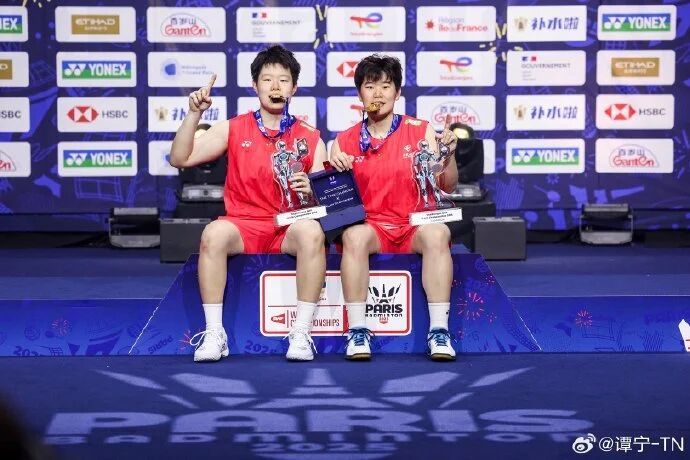 8月31日,冠軍中國組合劉圣書/譚寧(右)在頒獎儀式上