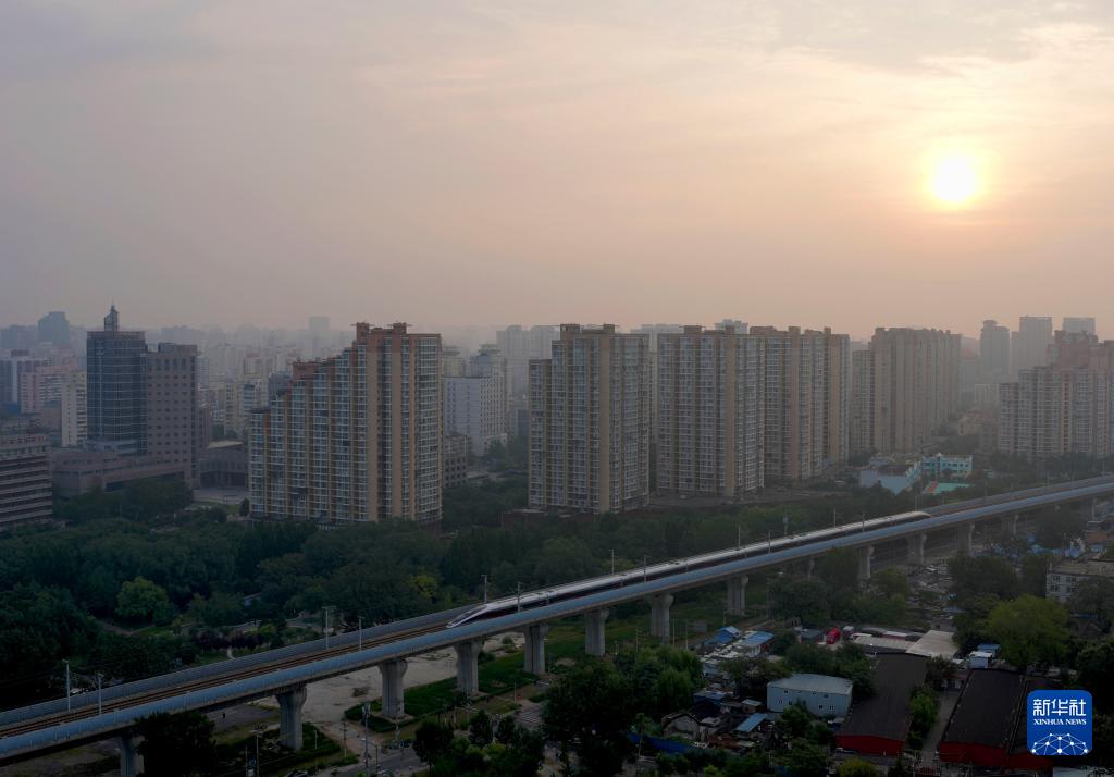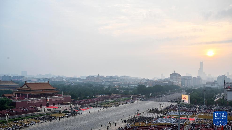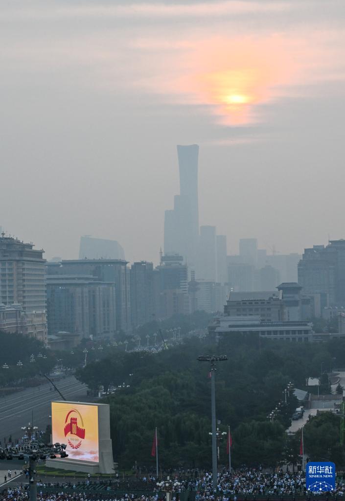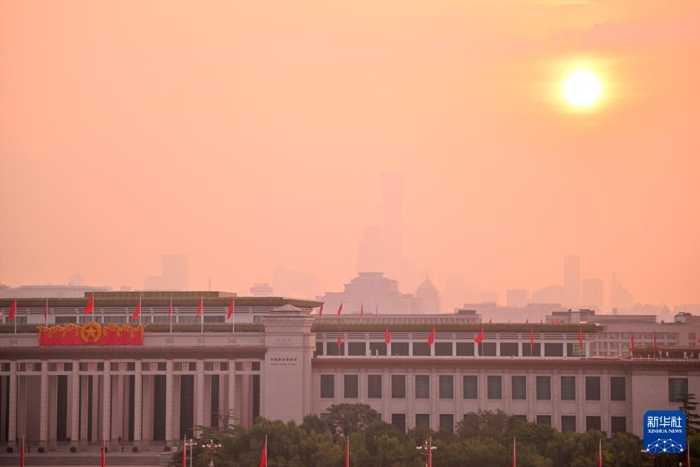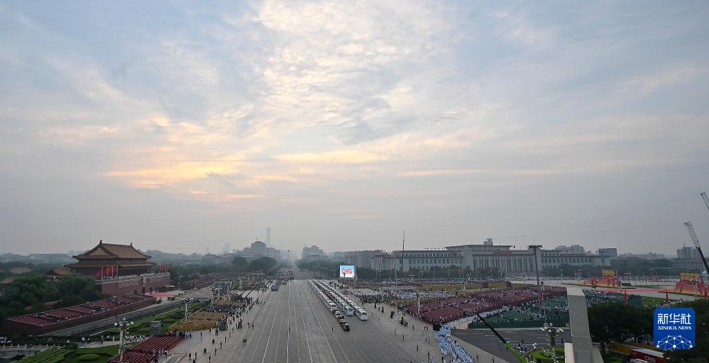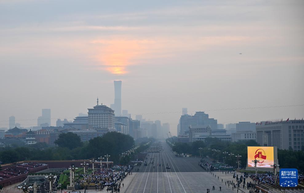 9月3日在天安門城樓上拍攝的北京的清晨。