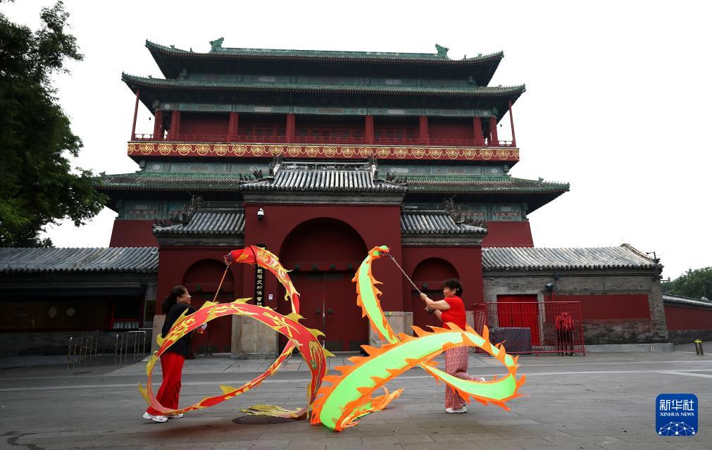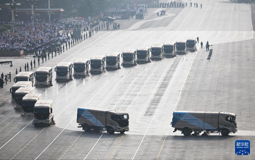 9月3日清晨,市民在北京鼓樓附近清掃街道。