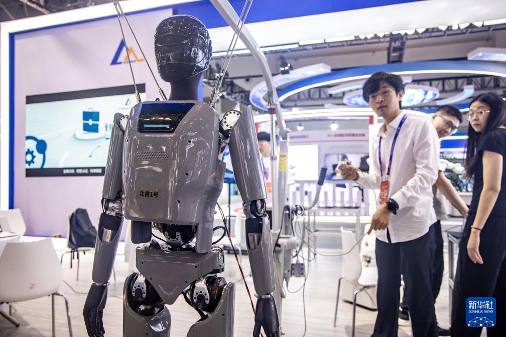 9月4日,工作人員在2025世界智能產業博覽會會場調試機器人。