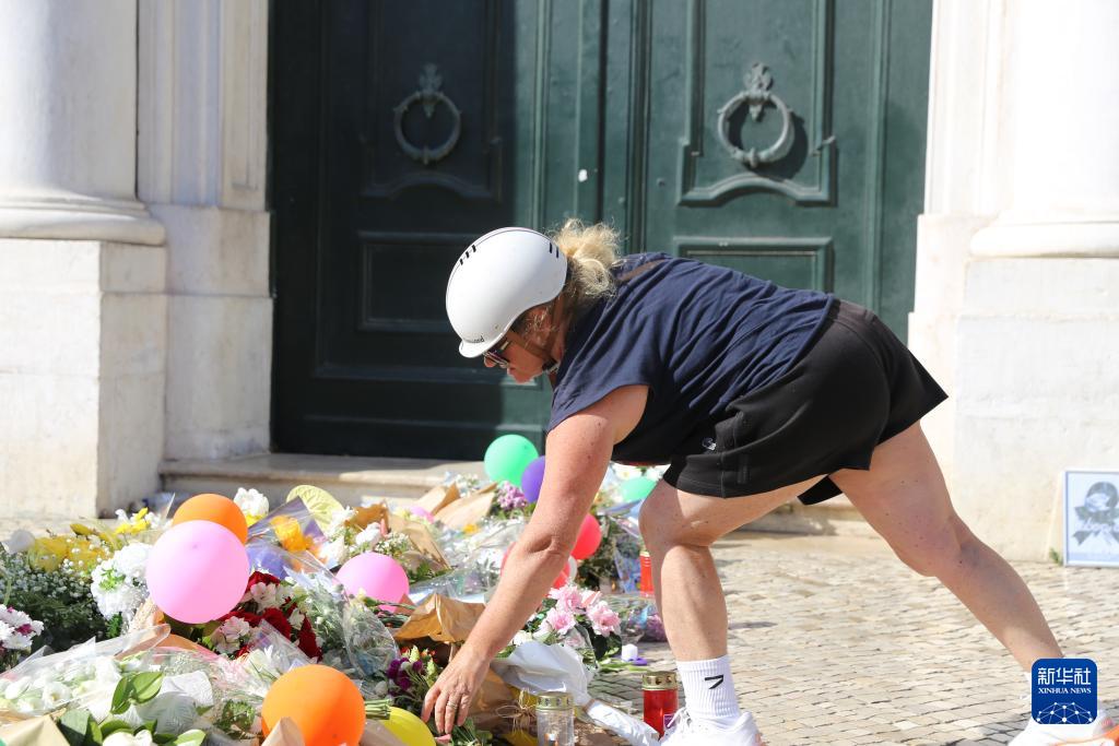 9月6日,一名女子在葡萄牙里斯本市中心的有軌升降纜車事故現場悼念。