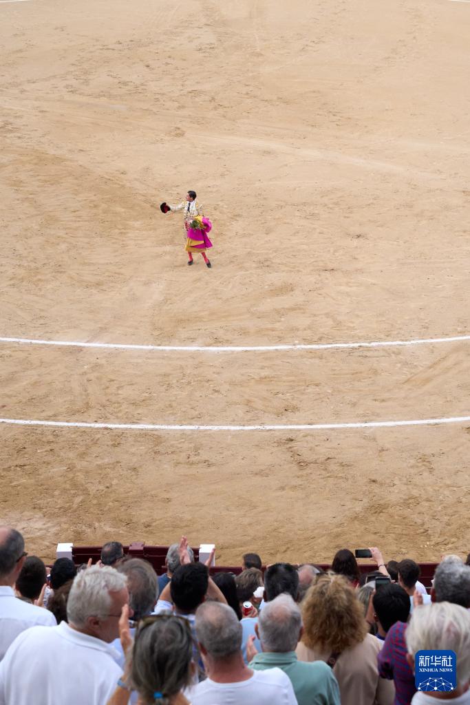 9月7日,一名斗牛士在西班牙馬德里拉斯本塔斯斗牛場內謝幕。