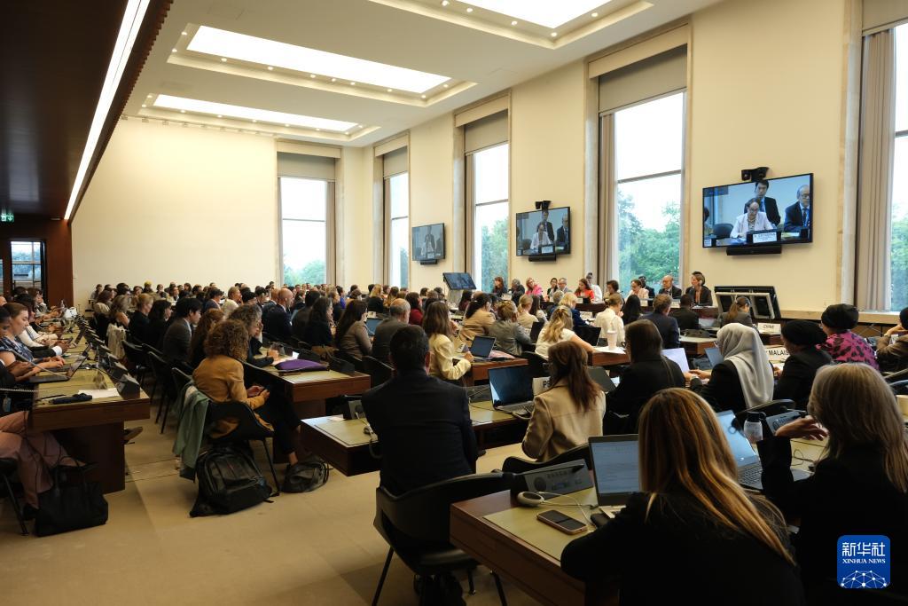 這是9月8日在瑞士日內瓦萬國宮拍攝的“北京+30”高級別紀念活動現場。新華社記者 馬汝軒 攝