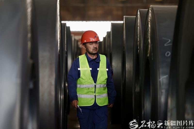 9月8日,新疆八一鋼鐵集團有限公司冷軋車間,工作人員正在查看生產的冷軋鋼卷。