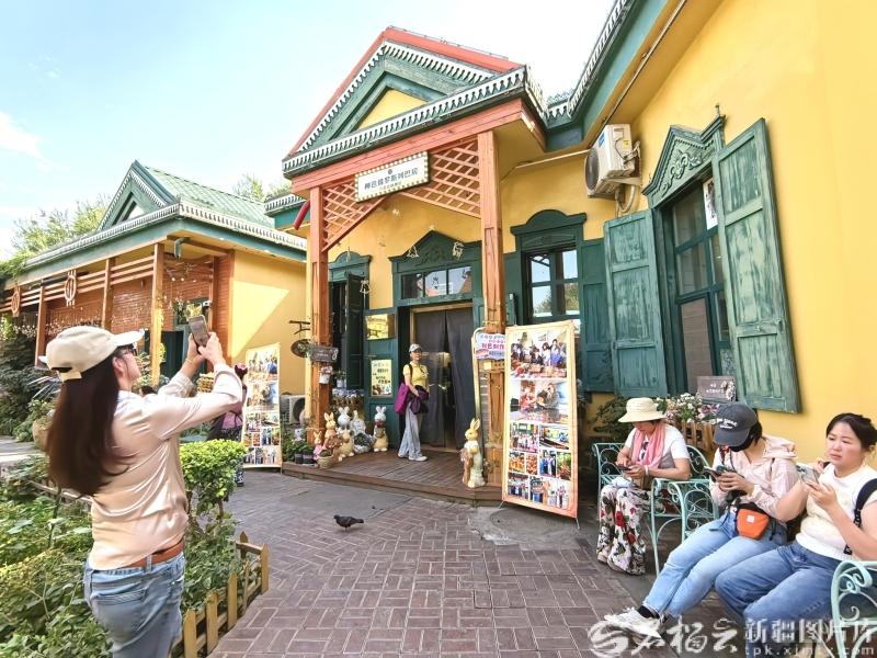 9月8日,游客在伊寧市六星街拍照。