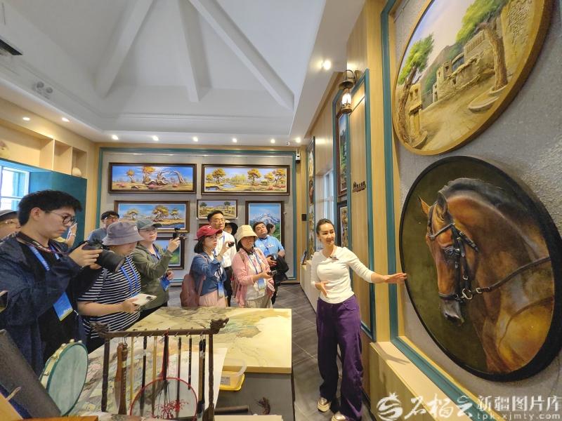 9月8日,采訪團(tuán)在伊寧市六星街景區(qū)彩石畫(huà)展覽工作基地采訪。