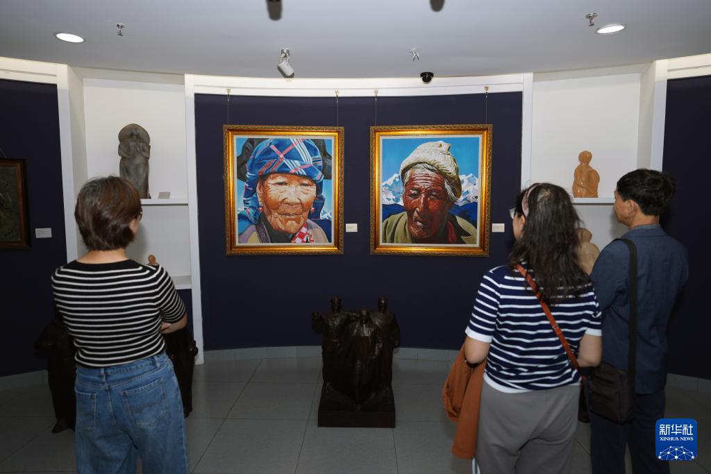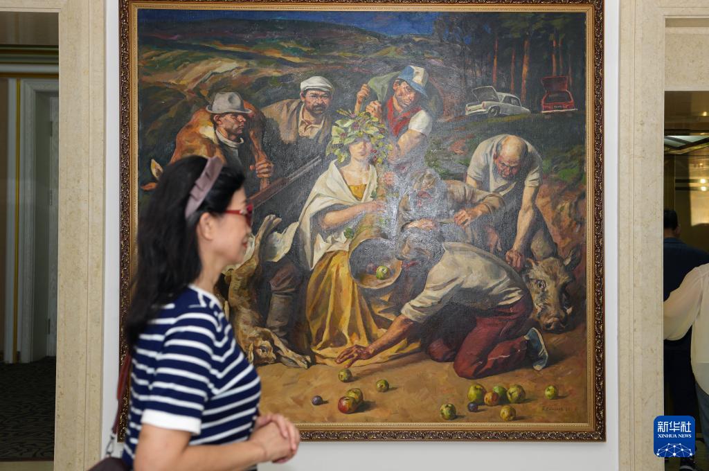人們在位于哈爾濱市平原街的韓建民中俄油畫收藏館參觀(9月7日攝)。
