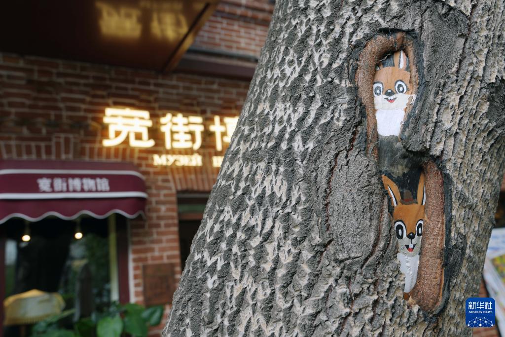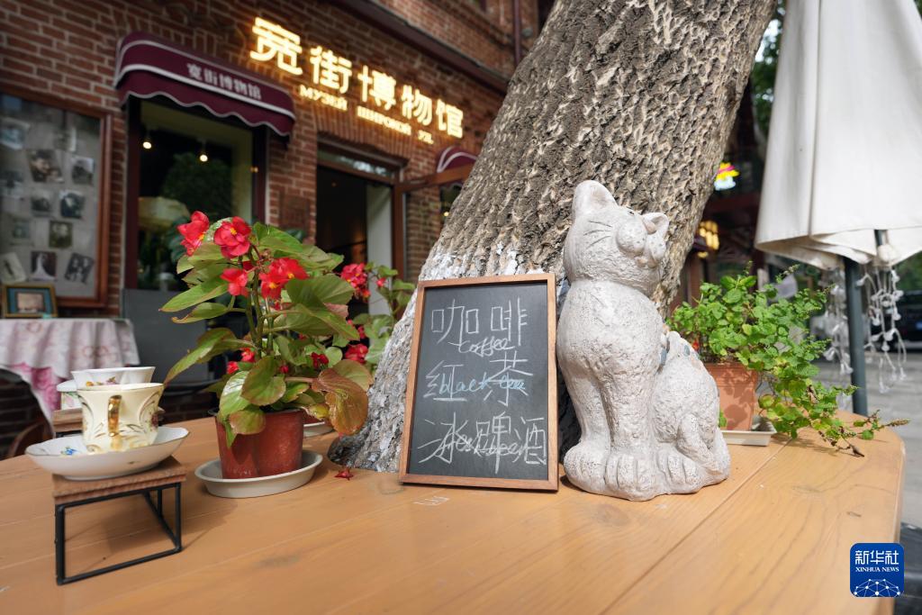 游客在位于哈爾濱市西十三道街的寬街博物館門前“打卡”(9月3日攝)。