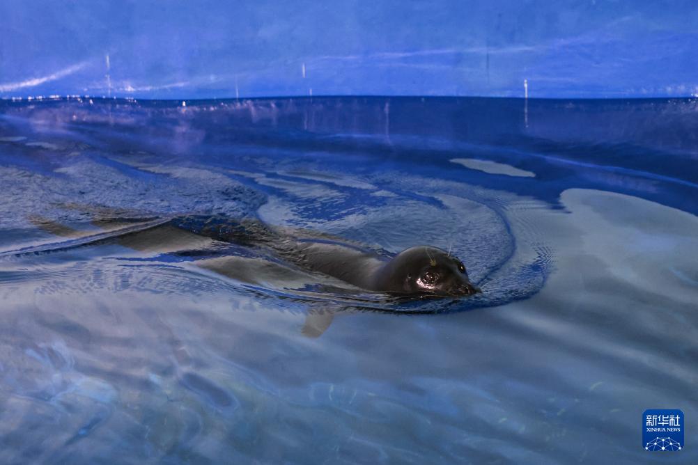 9月8日,海豹“阿儂”在海南陵水藍海保育救護中心的救助池中游泳。