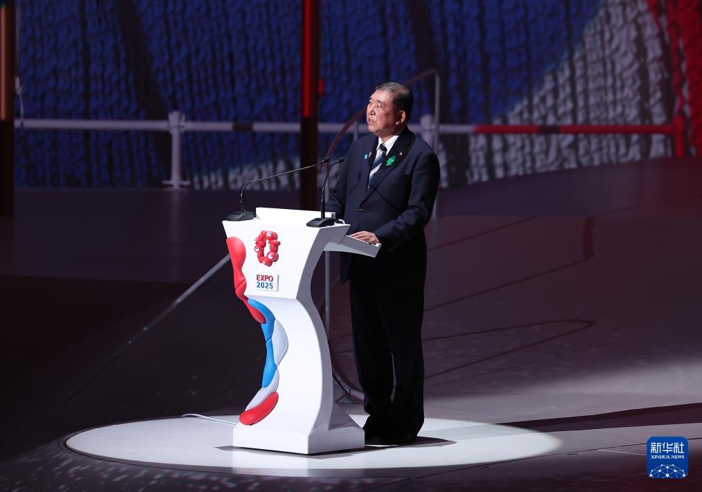 這是4月12日石破茂在2025年大阪·關西世博會開幕式上致辭的資料照片。